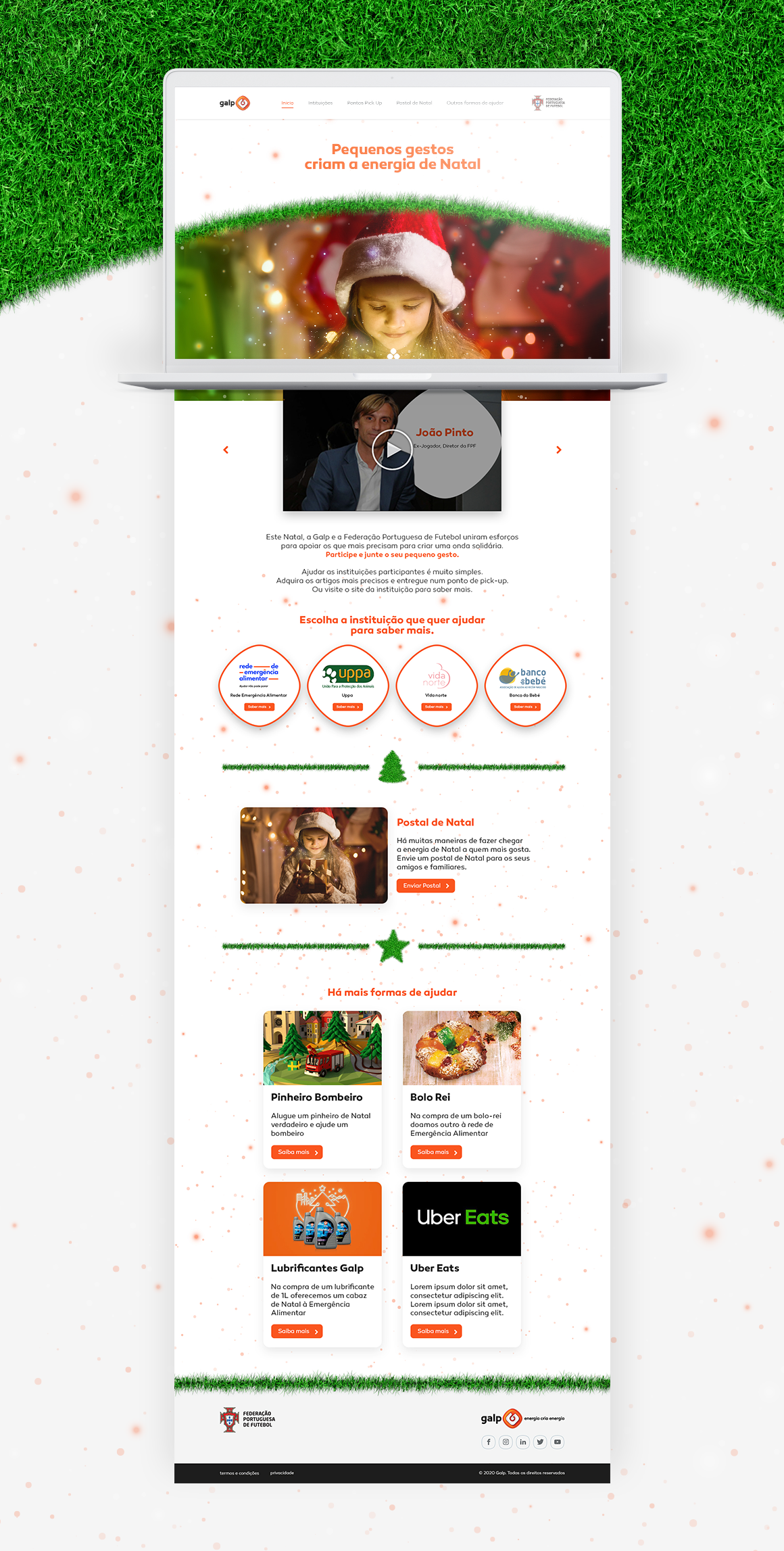 Website developed at Havas for the joint solidarity campaign of Galp, Portuguese Football Federation (FPF) and CTT that joined forces to support those who need it most and create a solidarity movement in the Christmas season of 2020 .